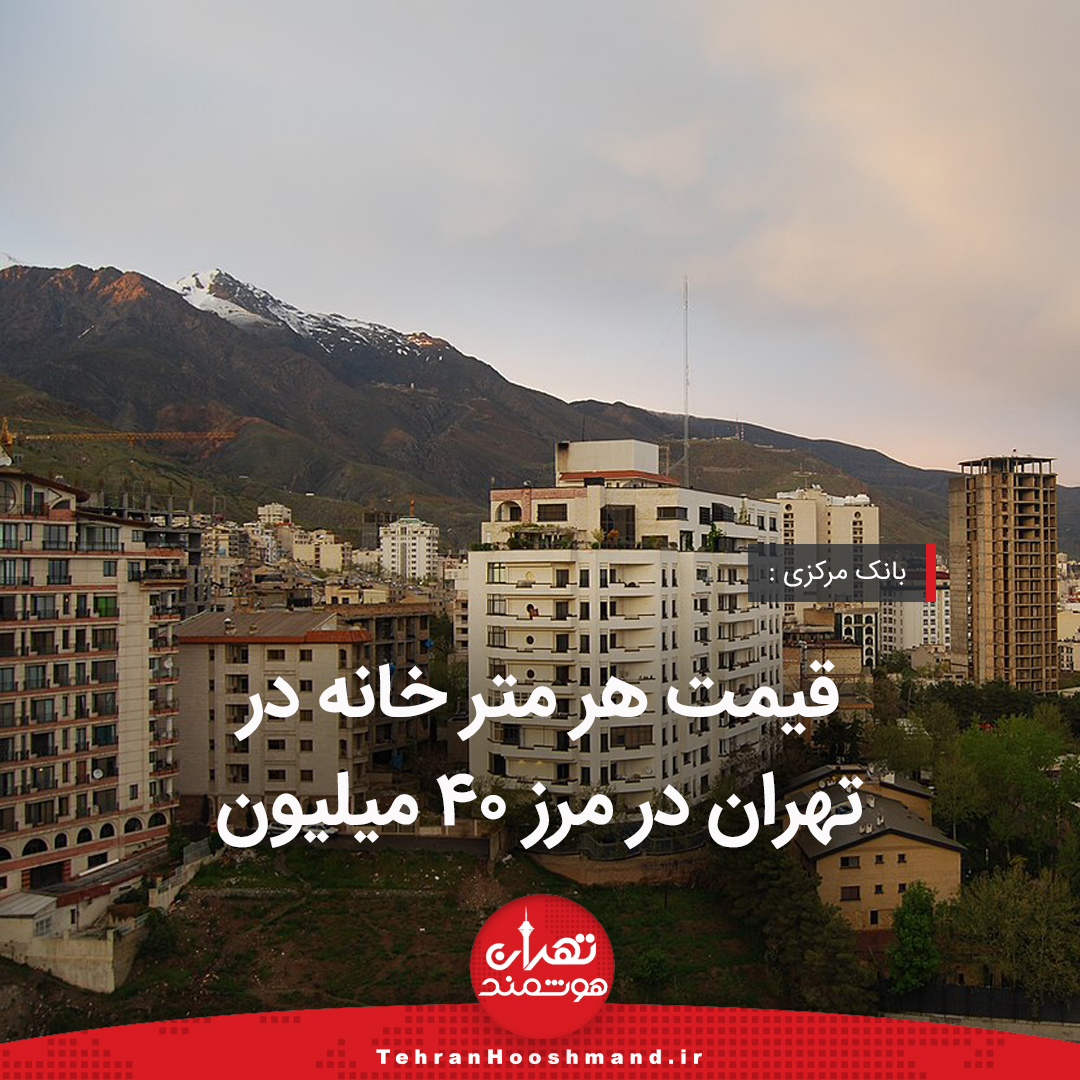 خردادماه امسال متوسط قیمت یک متر مربع مسکن در شهر تهران، ۳۹ میلیون و ۴۱۴ هزار تومان بوده که نسبت به ماه قبل و مدت مشابه سال قبل به ترتیب ۸.۴ و ۳۲.۸ درصد افزایش یافته است.